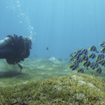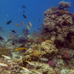 This dive site in the center of Dahab city is the ideal place to spot seahorses in the large sea grass field. Other species you will find here are various kinds of morays, young scorpion fish and sea urchins. In the sea grass field that encompasses a large part of this dive site you can also encounter many species of young vertebrates and fish. The reef starts at the southern point of the grass. Between the big coral formations and beautiful soft corals there are large morays, groupers, unicorn fish and a school of red fusiliers.